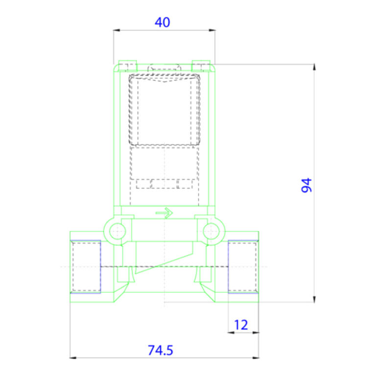 Electrovanne 2 voies à plongeur à membrane à commande attelée avec un raccordement 3/4'' Gaz et un corps en laiton.