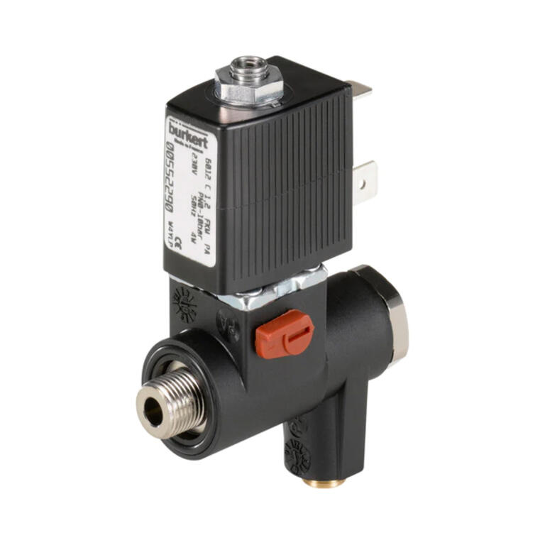 Électrovanne pilote Banjo Bürkert série 6012 à montage direct sur vanne pneumatique.