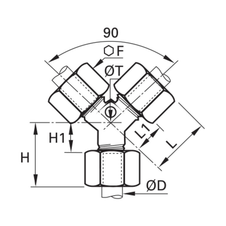 Raccord à compression en laiton, Y égal pour tube de 14 mm