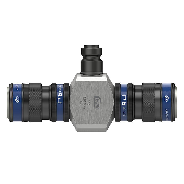 Coupleur multi-connexions en T très haute pression CEJN série 116 type C avec 2 corps de coupleur et un embout de coupleur, 1500 bar :
