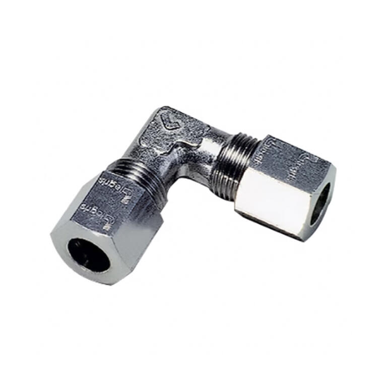Raccord à compression Legris série 1802, équerre égale en inox à bague permettant le raccordement de deux tubes de diamètres identiques selon un angle de 90°.