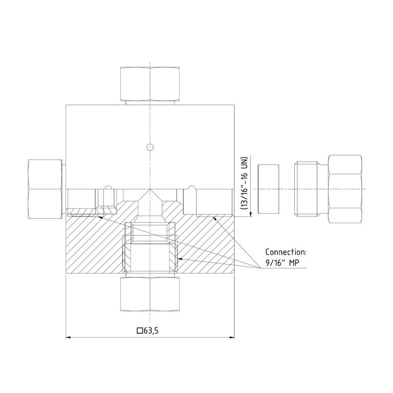 Bloc de raccordement en acier inoxydable 4 voies 9/16'' Gaz en croix CEJN pour applications hydrauliques très haute pression (1380 bar) :