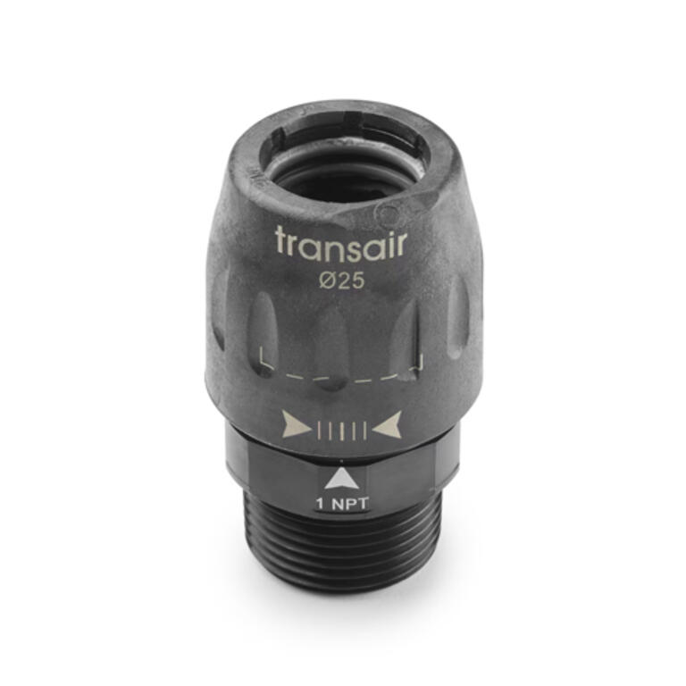 Connecteur mâle Transair Ø25 mm avec filetage R1'' pour systèmes d’air comprimé, vide et gaz inertes :