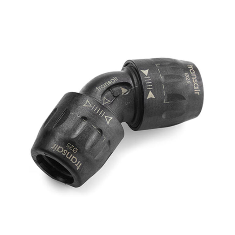Raccord coudé 45° Transair Ø25 mm pour réseaux d’air comprimé, vide et gaz inertes :