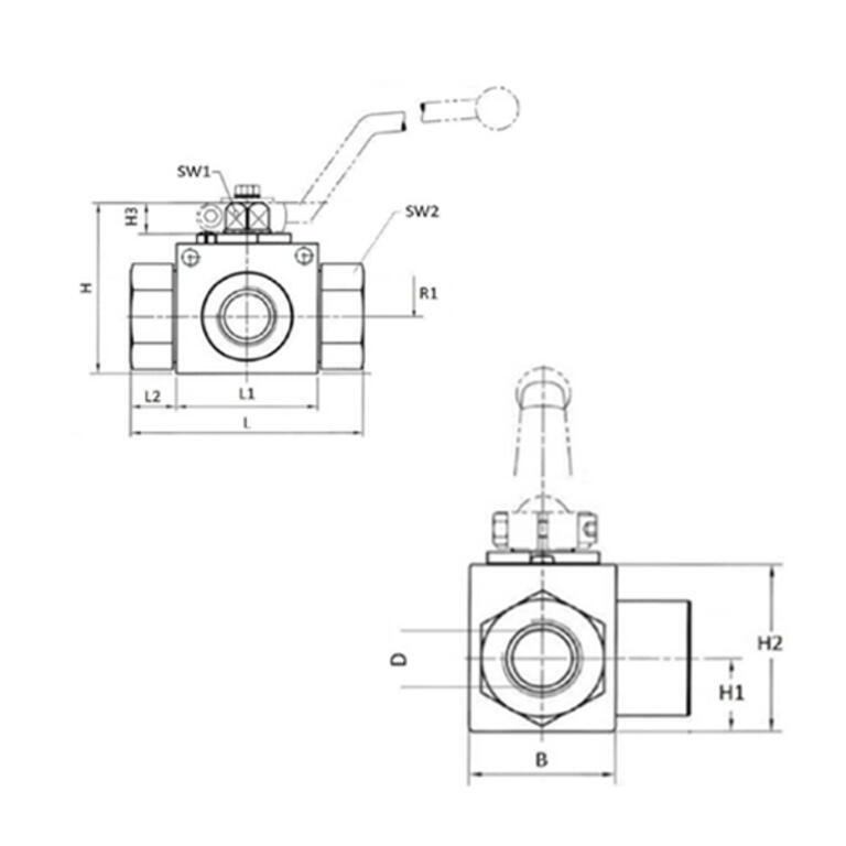 Vanne inox à pointeau avec 3 voies femelle boisseau 3/8'' BSP pour applications très haute pression (500 bar) :