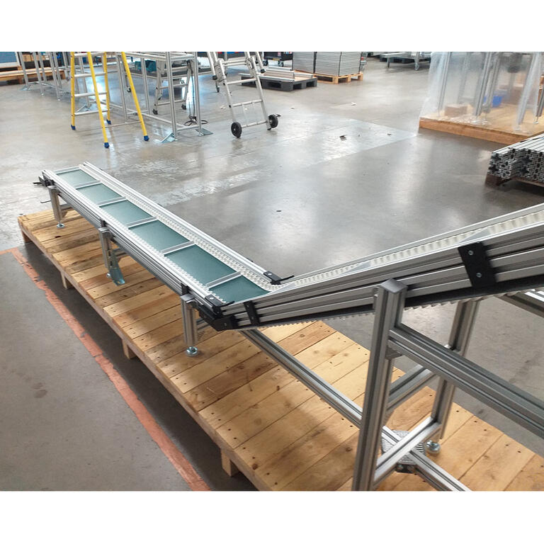 Grâce à son châssis en profilés aluminium de 40 mm d'épaisseur, ce convoyeur est idéal pour le transport de pièces unitaires avec une charge maxi de 30kg sans accumulation.