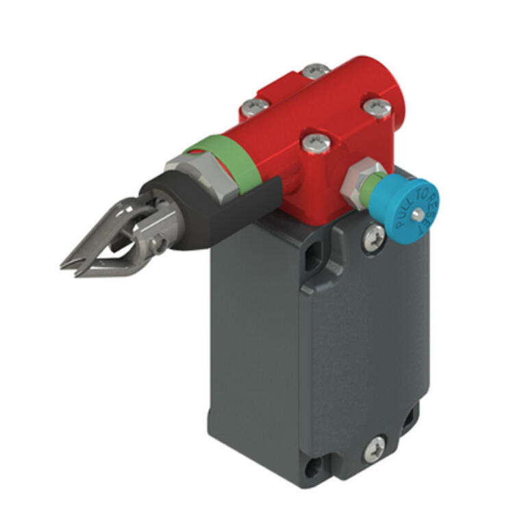 Interrupteur conçu pour permettre l’arrêt d’urgence depuis n’importe quel point d’action sur le câble, avec maintien des contacts ouverts après actionnement jusqu’au réarmement.